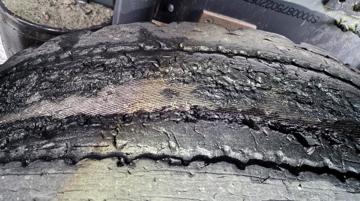 Hell i uhell under utekontroll: Lastebildekket eksploderte på kontrollplassen